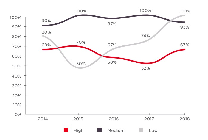 Edgescan, vulnerability statistics report, 2019 pg. 8.