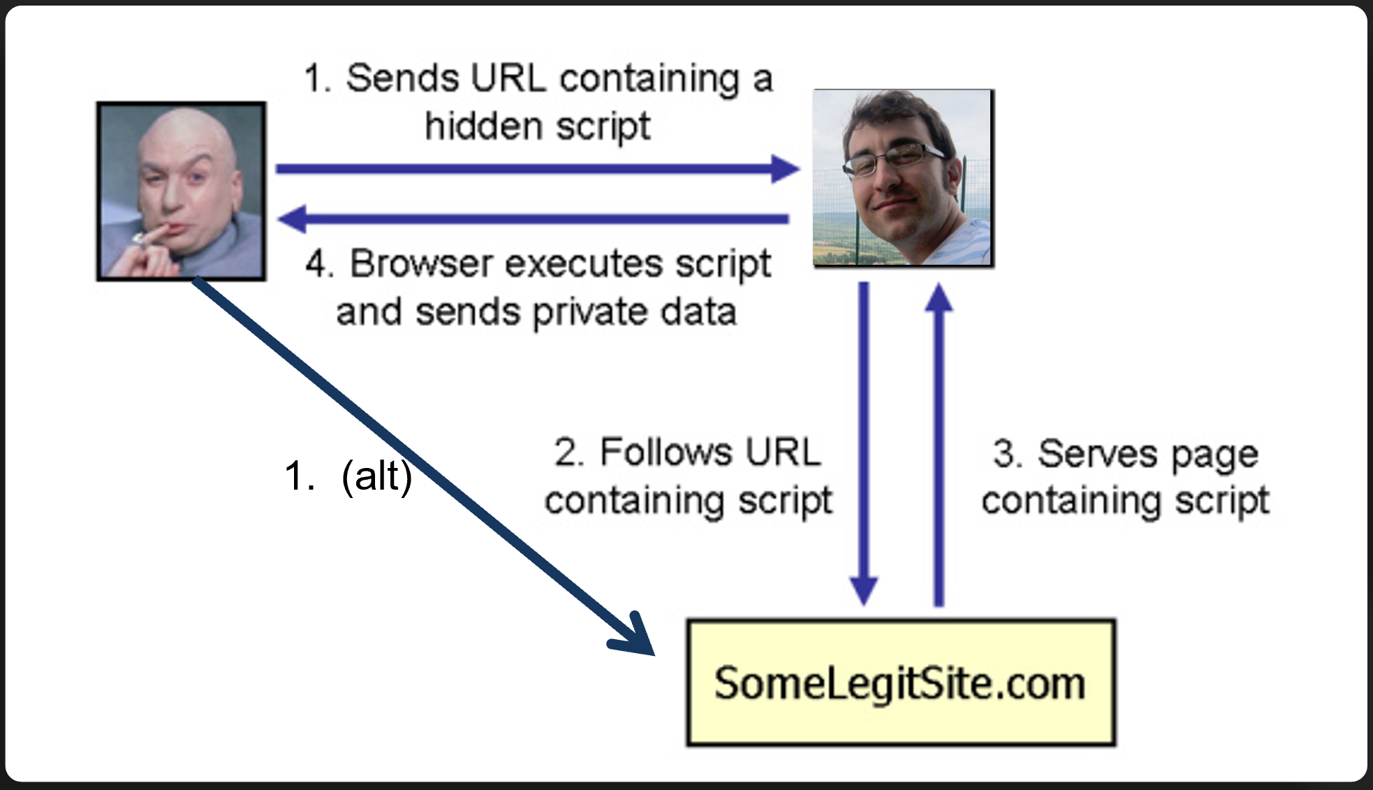 Allows attackers to inject malicious scripts into web pages and have it executed in another user’s browser. Usually to capture some user information.